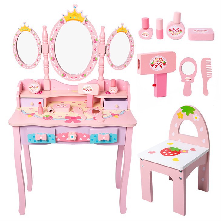 Production principale comprenant la maison de poupée, la cuisine pour enfants, la coiffeuse, la table d'apprentissage. tour d'apprentissage, cadre d'escalade, etc.